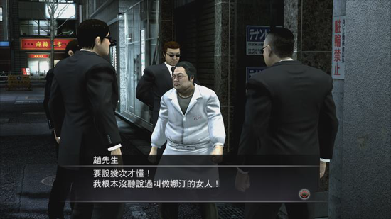 在桐生一马方面,他的主题叫做“2010年神室町的那个人的现状”,他的支线剧情叫做“花语”。这是系列作老面孔高志的支线故事。他与女友京香的关系,以及横跨好几部作品,追逐父亲背影的故事将在此画下句号。桐生在街上遇到好久不见的高志,得知女友京香已经怀孕,他们计划结婚。高志希望自己下落不明的爸爸也能参加婚礼,拜托桐生带他去找情报贩子赛之花商,请花商告诉他爸爸的情报。当高志与花商见面,花商提出一个条件,只要高志完成某项工作,就让他和爸爸见面。这份工作似乎和秋山等桐生以外的主角也有关系!?主角们会如何参与这次的支线故事也是看点之一。高志完成工作之后,从桐生手中收下赛之花商转交的花,他藉由这束花带来的情报,自己找出了真相。